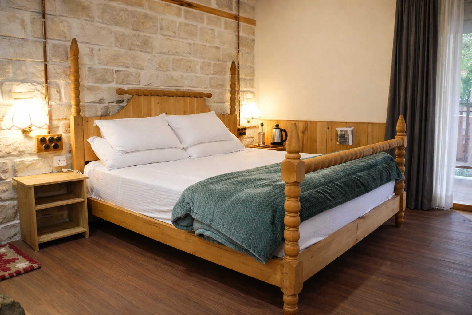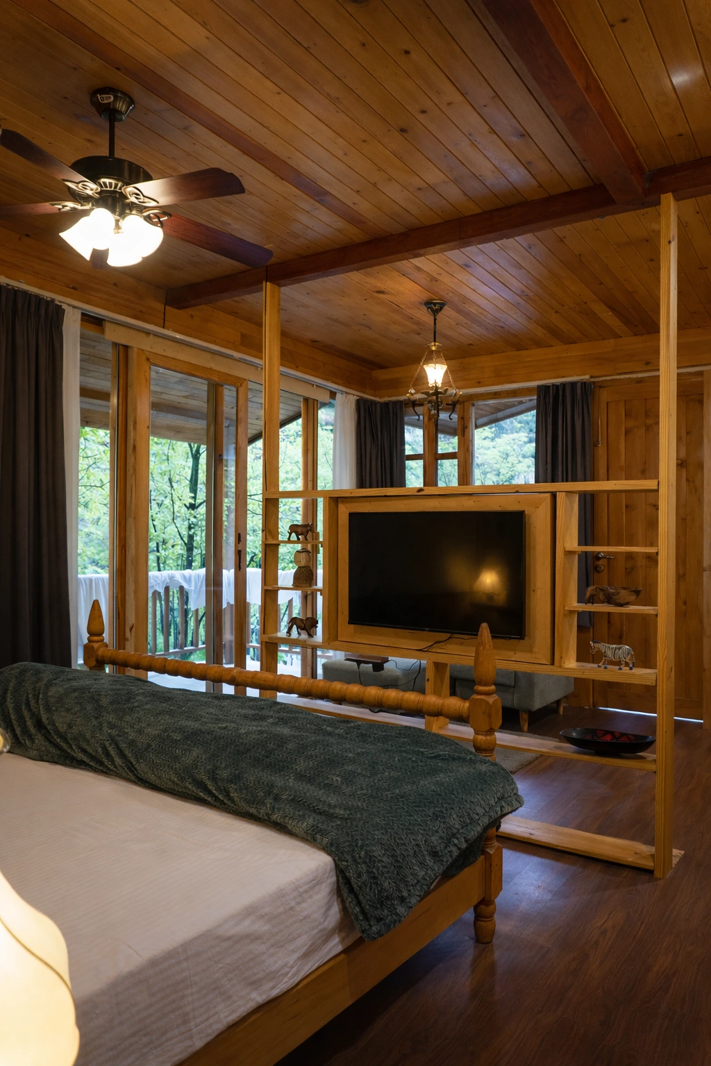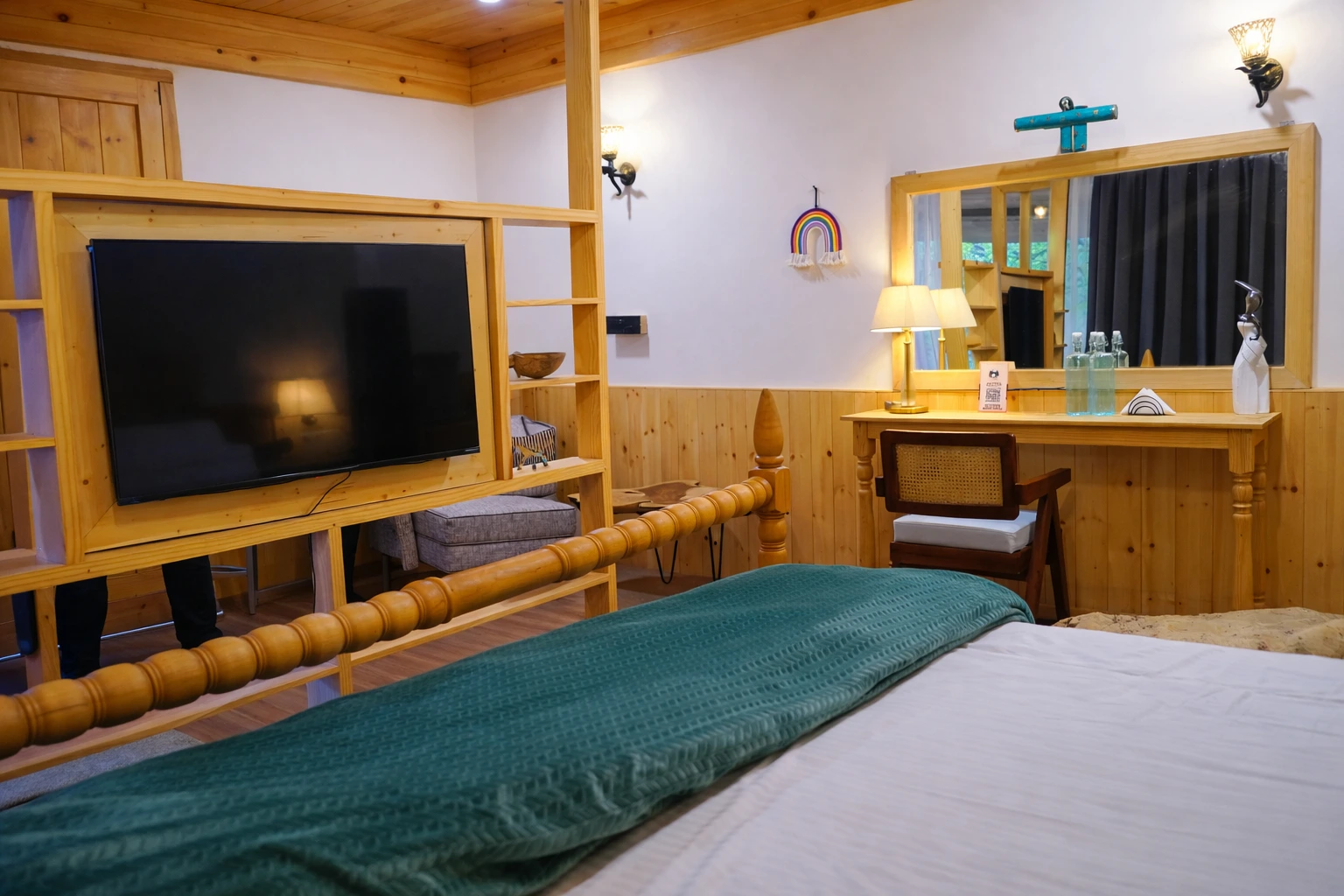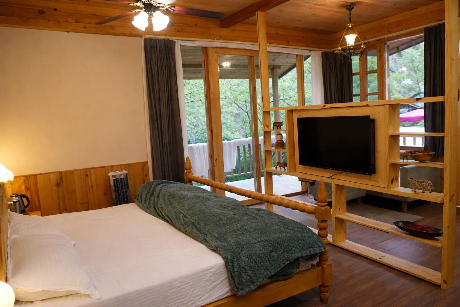 A beautifully designed single-bedroom cottage at By The Brook in Tirthan Valley, crafted for comfort, privacy, and a touch of luxury.